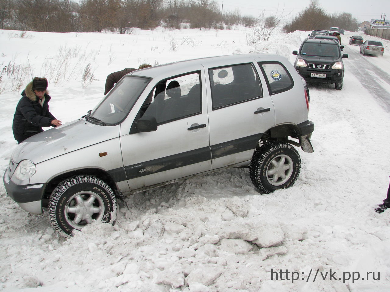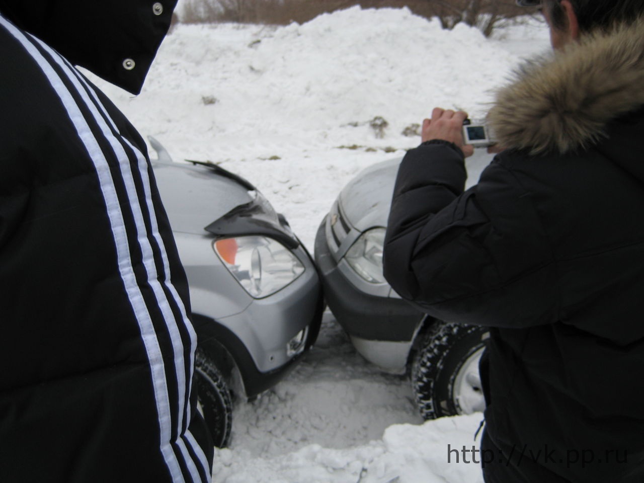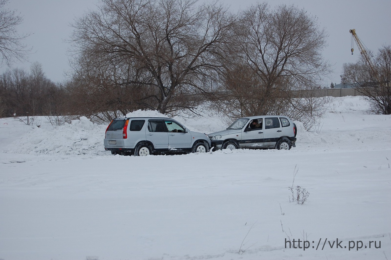 Не обошлось без накладок, в процессе "колбашения" произошло касание бамперами Шнивы и Хонды, но повезло, не осталось даже царапин.